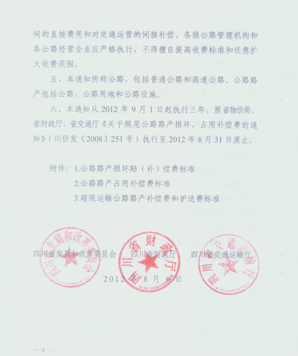 川发改价格(2012)811号 公路路产损坏、占用赔(补)偿费