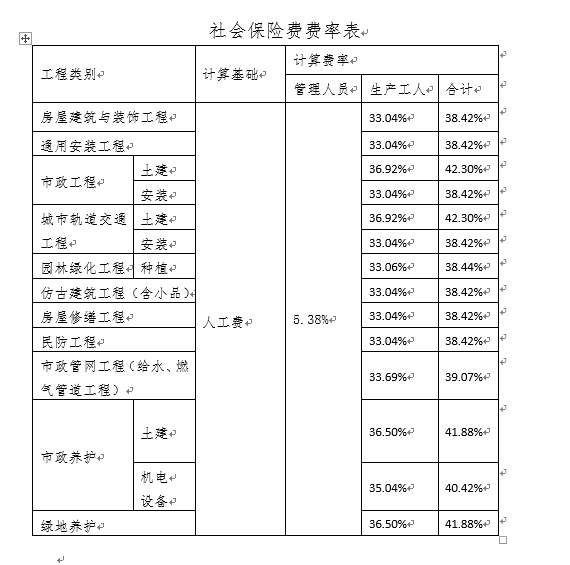 一、最高投标限价中的社会保险费、住房公积金以分部分项工程、单项措施和专业暂估价的人工费为基数,其中,专业暂估价中的人工费按专业暂估价的20%计算。初步设计概算、施工图预算、市政养护、绿地养护以人工费为基数,乘以相应费率。