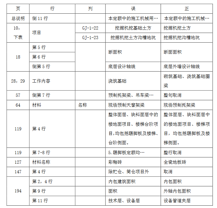 附件:《山东省建设工程概算定额》建筑工程勘误表